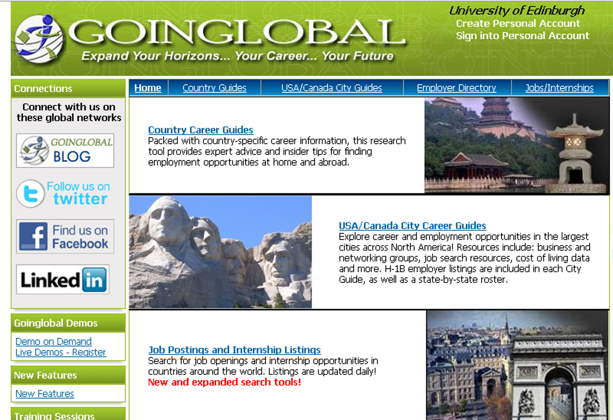 One of my colleagues recently gave a short demo on a resource we’ve had at the Careers Service for a while. It’s called Going Global and it provides a way of finding out about living and working in different parts of the world. I was amazed at all the different things you can use the resource for so I thought I’d mention some of them here.